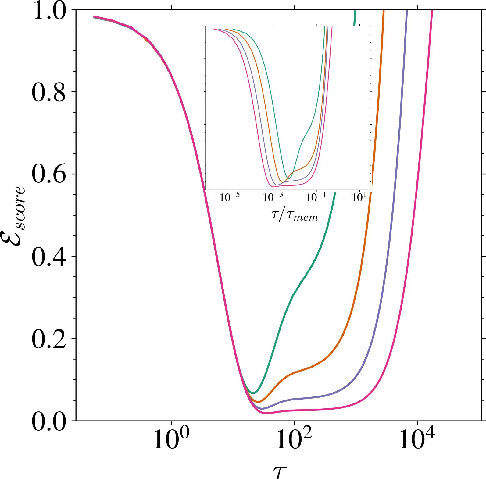 \tau_{\text{gen}}:=\frac{\psi_p}{\Delta_t}\inf\mathrm{supp}\;(\textcolor{#E69252}{\mu_{\widetilde{U}}})=O(1/\Delta_t). \tau_{\text{mem}}:=\frac{\psi_p}{\Delta_t}\inf\mathrm{supp}\;(\textcolor{#928EC3}{\rho_1})=O(\psi_n/\Delta_t). t>0 が大きく,n が大きいほど \tau_{\text{mem}} が大きい.