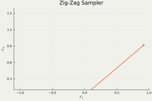 sampler = ZigZag (dim, ∇U; refresh_rate= 0.0 )