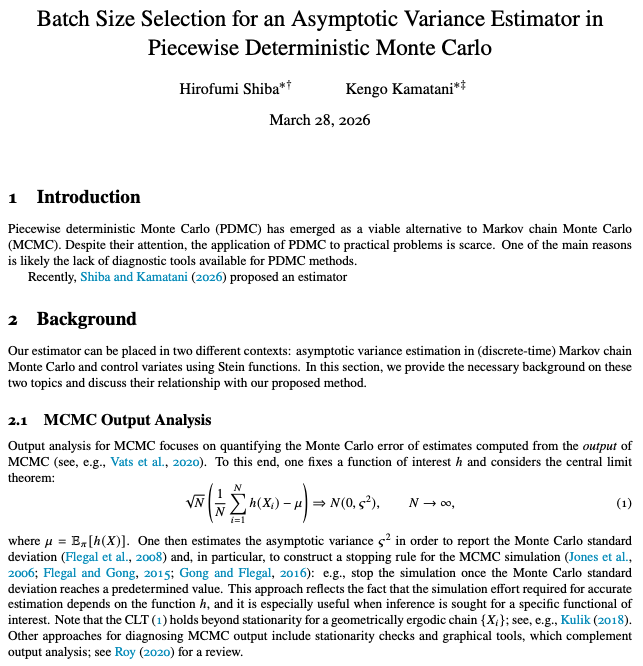 (Shiba and Kamatani, 2026) のプレプリント公開と Annals of Applied Probability への投稿