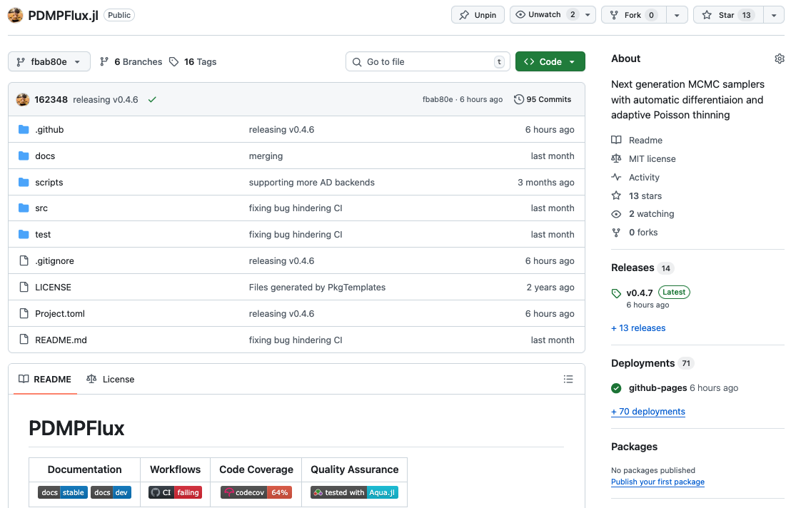- 従来は汎用パッケージがなく,PDMP の応用研究は僅少 → 分野内唯一の汎用 PDMP パッケージを開発